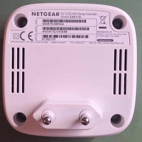 Netgear WiFi extender, der fordeler netværket i huset for bedre modtagelse.