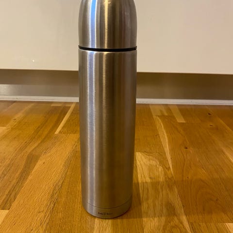 Skønne lette vandflasker i letvægts aluminium med skruelåg og karabinhage - aldrig brugt - kan rumme 1 liter, i farven rød - har 2 stk i originalemballage - pris pr stk 50 kr