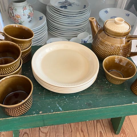 Stavanger Flint kaffe og tekande i fin stand. Tekande har lidt lys “fejlfarving” i en smule af kanten, under låget, men det ses nærmest ikke i brug.