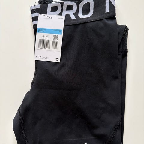 Det ene bukseben med grå prikker og det andet med gråt Nike logo og tryk