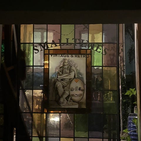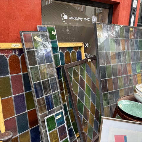 Utroligt smukt gammelt blyindfattet vindue med farvede glas