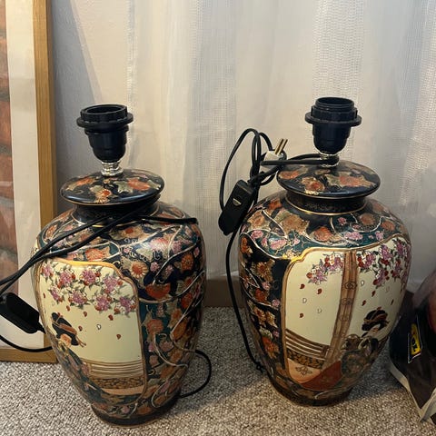 Håndmalet 4 kantet japansk bordlampe fra Gold Imari med tilhørende skærm.