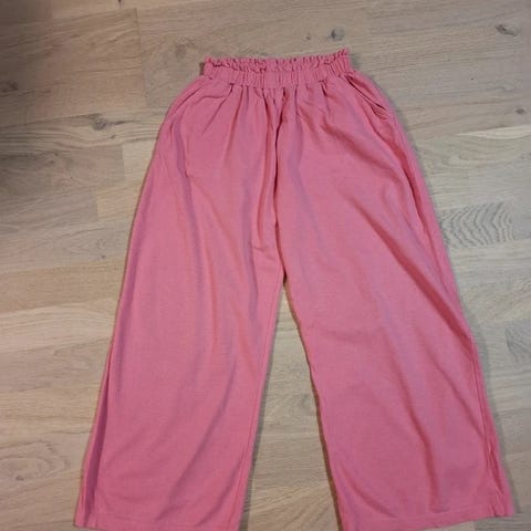 Dejlige overtræksbukser i blødrt windbreaker-stof med gult fleecefoer. Mindre brugstegn men stadig fine.
