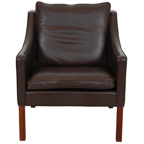 Børge Mogensen 2207 lænestol i sort læder med mørkebrune ben.