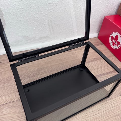 Iittala Vitrini opbevaringsboks i klart glas og eg med firkantet form. Boksen består af en klar glasoverdel og en træbund, der giver et stilrent og funktionelt design. 108x108 mm. Original emballage, har aldrig været brugt.