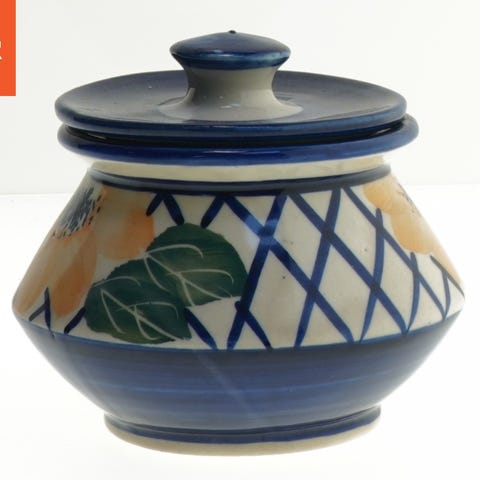 Keramik Krukke med Kattemotiv i Blå og Beige