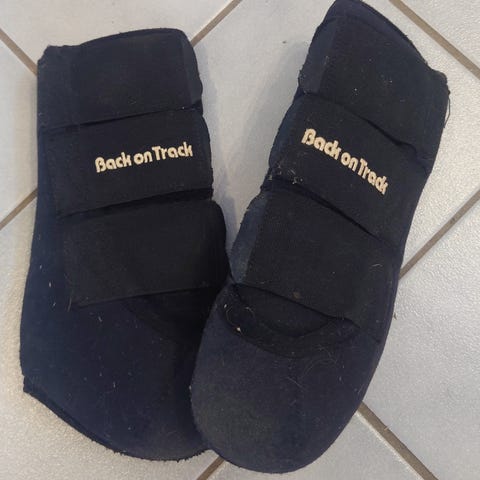 Platinum Black dressur gamascher i sort farve. Størrelse pony. Fremstillet i slidstærkt materiale med tre justerbare velcrolukninger for sikker pasform. Beskytter hestens ben under ridning.