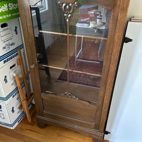 Fantastisk flot og antikt bogskab. Det er det helt org. mere end 100 år skab med det gamle glas, der sidder i døren. Gennemført og flot håndværk.