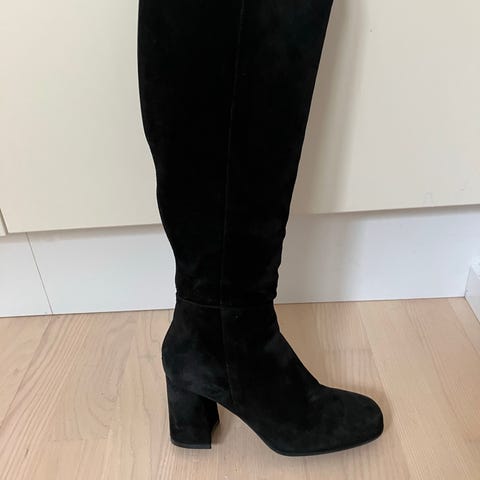 Meget flotte lange støvler med nitter og snøre i sort ruskind, fra Saks Fifth Avenue i str. 40