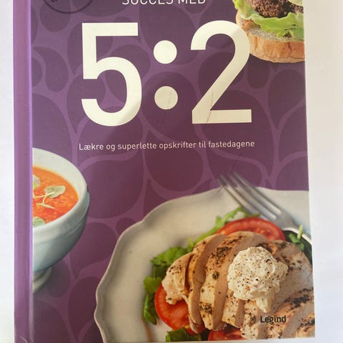 Succes Med 5:2 bog med fokus på kostplaner og opskrifter til 5:2 diæten. Indeholder vejledning til vægttab og sund livsstil med eksempler på måltider og ernæringsinformation. Bogens format er standard paperback med farveillustrationer af madretter.