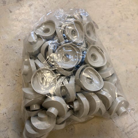 IKEA RAFFIG endelnopper i hvid plast.