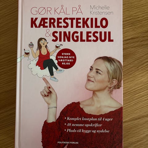 Michelle Kristensen Gør Kål På Kærestekilo Singlesul Bog med fokus på vægttab og kostplaner. Indeholder komplet kostplan til 1 uge, 48 nemme opskrifter og råd til livsstilsændringer. Udgivet af Politikens Forlag.