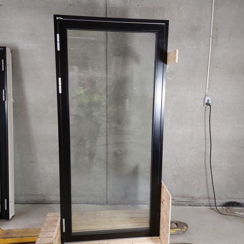Terrassedør, mahogni-brun yderside, hvid inderside, 2 lags termorude.