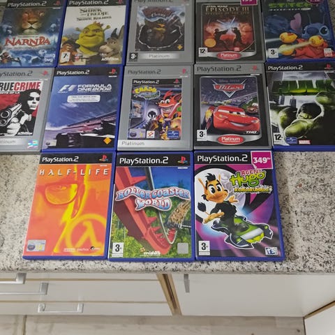 Playstation 2 spil pakke indeholder Stunt GP, Roller Coaster funfare og flere. Spil i forskellige genrer inklusive racerløb, forlystelsespark og action. Spil til Playstation 2 konsol, med originale covers og diske.