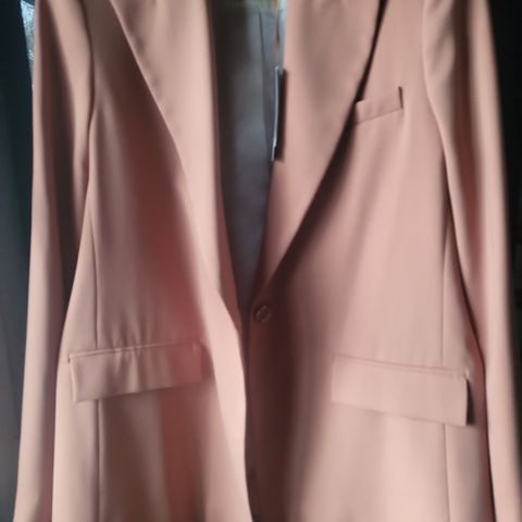 Materialet fremstår som et mønstret stof, og jakken har en klassisk og struktureret pasform.