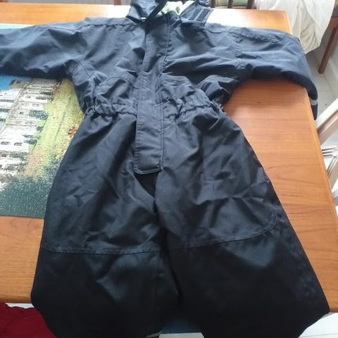 Rigtig god flyverdragt med fleecefoer. Ingen huller, alle lynlåse virker. Ikke slidt ved fødderne. Hætten kan tages af