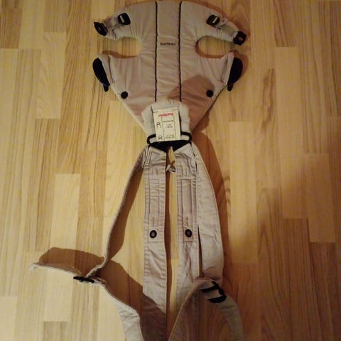 Baby bære/vikle som er en tube model. Brugte den når det skulle gå hurtigt og jeg havde tid til de mange meter vikle. Super nem.