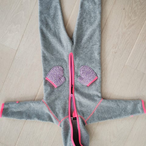 Molo fleece heldragt uden huller eller pletter. Heldragten har hætte og lynlås foran. Materialet er blødt fleece, som giver varme og komfort. Ærmerne har foldbare manchetter, der kan dække hænderne. Velegnet til daglig brug og udendørs aktiviteter i køligt vejr.