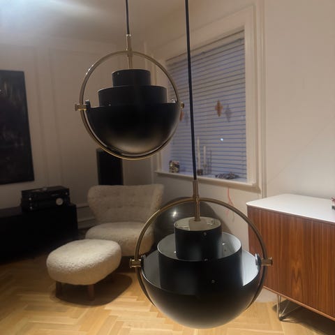 Den smukke Multi-lite loftslampe i Sort med messing stel.
