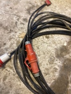 20 meter kraftforlængerkabel (5faset) med CE-stik. Samt omforandrer tilslutning fra CE-stik til flad 5 faset “gammel” kraftstik.