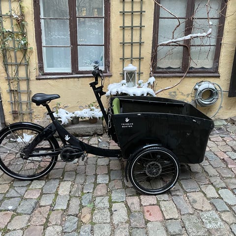 Har fulgt service. Fremstår næsten som ny - børnene har passet godt på den og den har altid stået inde. De er for hurtigt blevet for store og vil gerne cykle selv nu.