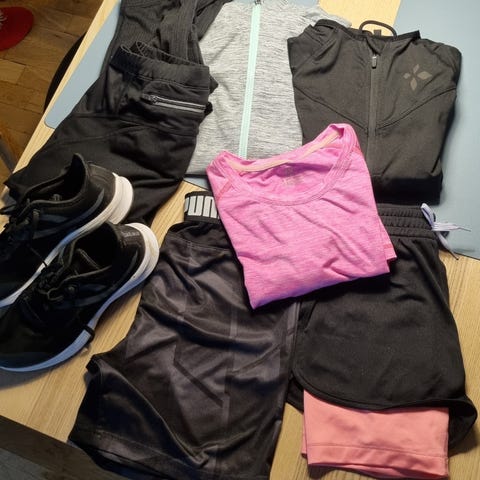Termoløbebuks med windbreak, str 160, lynlås ved fødder kan ikke åbnes. 30kr