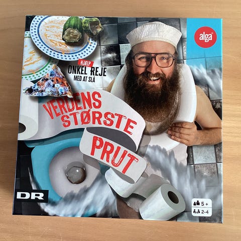 DR Verdens Største Prut brætspil med Onkel Reje og Møf & Sju. Spillet er velegnet til 4-5 spillere i alderen 4-12 år. Det indeholder forskellige spilrelaterede elementer og tilbehør, der passer til familiens spiloplevelse.