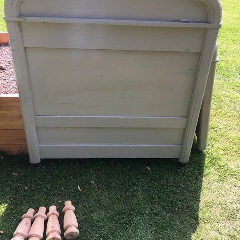 Fin gammel karlekammerseng uden bund. Indvendig bundmål: 75 x 180 cm. Gavlhøjde 99 og 106 cm