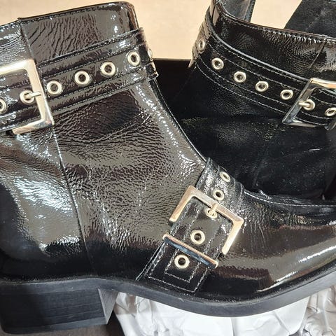 Brugt en gang, da de er en anelse for små til mig. Skoæske og stofposer til støvlerne medfølger.