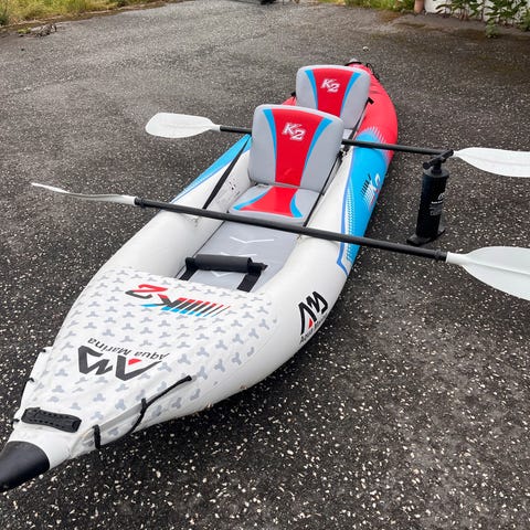 Oppustelig kano, 318x82cm Inkl paddel. Op til 160kg. Til 2 personer.