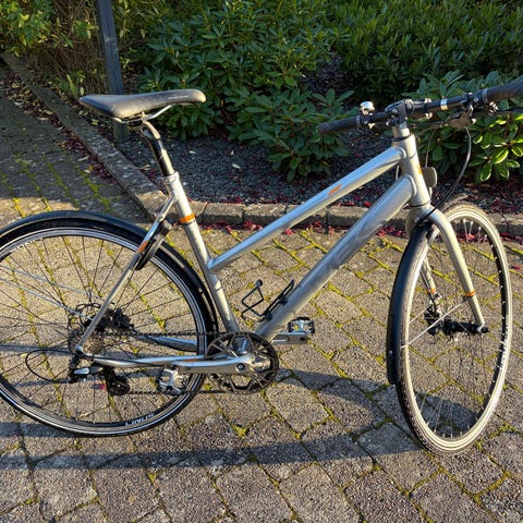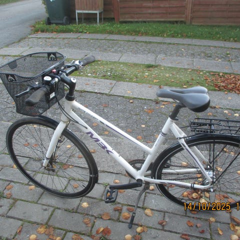 MBK Unisex Citybike i hvid farve. Cyklen er designet til bykørsel med et komfortabelt stel og praktisk bagagebærer. Den har et lavt indstigningspunkt, hvilket gør den nem at komme af og på. Cyklen er egnet til både mænd og kvinder og er velegnet til daglig pendling eller fritidsbrug.