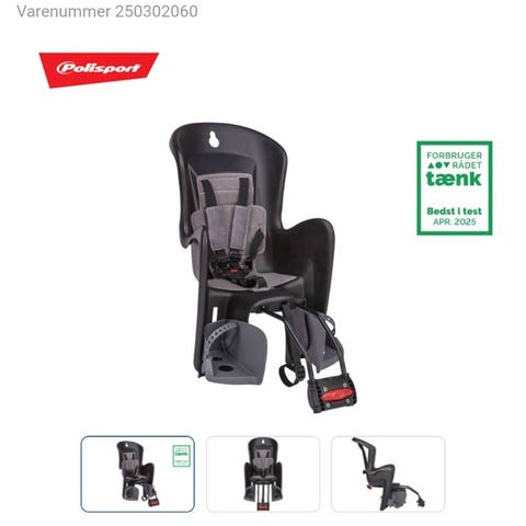 Polisport Bubbly cykelstol i sort farve. Kommer med sikkerhedsseler og justerbare fodstøtter.