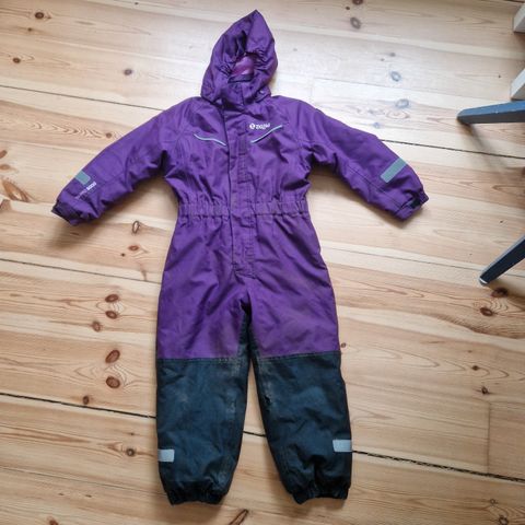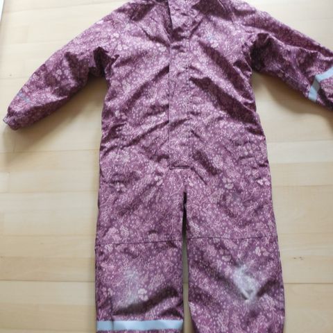 Pæn pink flyverdragt fra Zigzag i størrelse 110/116. Den er blevet for lille og klarer let et par sæsoner mere.