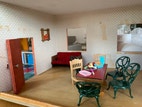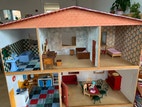 Dukkehus med mange møbler og tilbehør. Taget og facade mangler en kærlig hånd