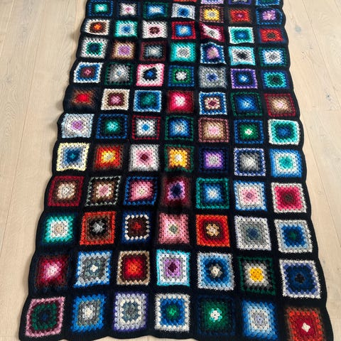 Ny varm hæklet plaid str 110x150 cm, 75% uld, 25% polyamid (strømpegarn) kan vaskes i maskine. Dejlig blød, varm og stærk tæppe. 150 kr.