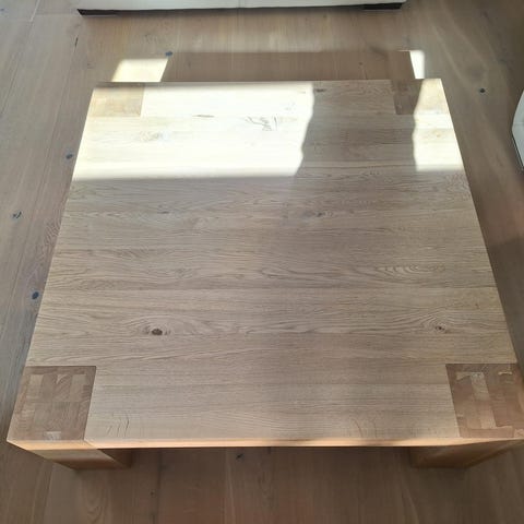 Pæn rustik sæbebehandlet egetræs sofabord. Trænger til en sæbe opfriskning