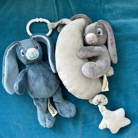 Spilledåse Kanin Legetøjet har et snortræk, der aktiverer bevægelse og musik. H 14 cm. B 10 cm