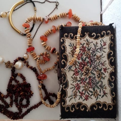 Endnu et af min mors mange gamle smykker. Halskæder OG et smykkeskrin Samlet 75 kr. Eller 45 kr pr stk. Halskæden er ca 44 cm lang. Jeg sender gerne til dig hvis du ikke har mulighed for at afhente i Frederiksværk.