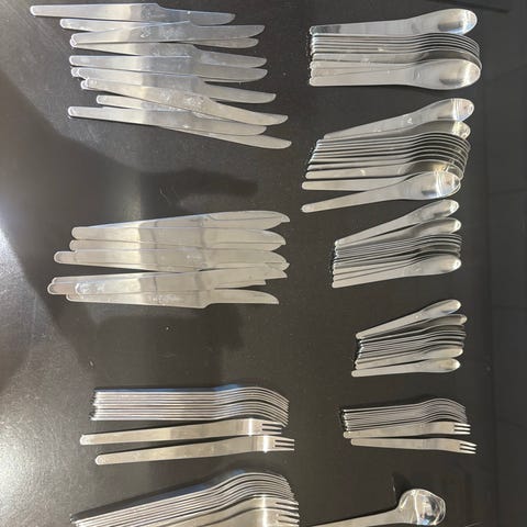 Georg Jensen bestiksæt bestående af 60 dele i rustfrit stål. Sættet inkluderer skeer, gafler og knive med et klassisk og tidløst design. Egnet til daglig brug eller til formelle spiseanledninger.