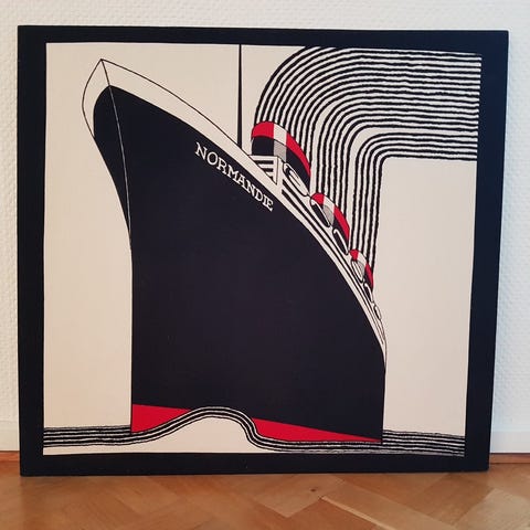 Retro tekstiltryk – Dan Bassols – “Skib på bølger” (1970’er design)