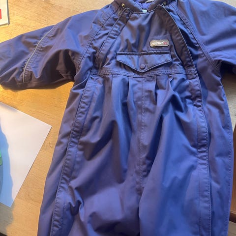 Rigtig pæn og varm flyverdragt i lilla. Intakte stropper og minimalt slid.