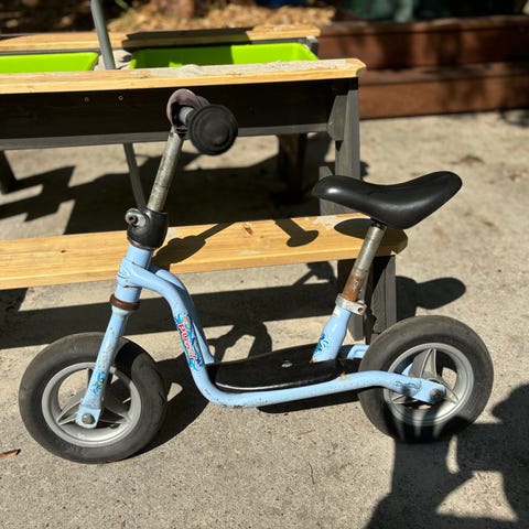 Puky Løbecykel i pink farve, designet til børn. Løbecyklen har et robust stel og et justerbart sæde og styr for at tilpasse sig barnets størrelse. Den er velegnet til at træne balance og koordination hos små børn.
