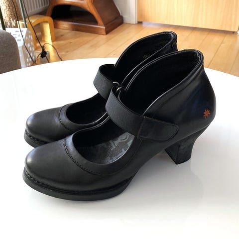 Rundet spids snude, hælen er en mellemting mellem stilethæl og blokhæk.