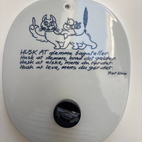 Fin og velholdt Piet Hein platte fra 1980 sælges. Er kongeligt porcelæn (Royal Copenhagen). Er en platte med de særlige Piet Hein-gruk. Kan bruges både som smørrebrøds-platte og til at have hængende på væggen. Sælges for 150 kr.