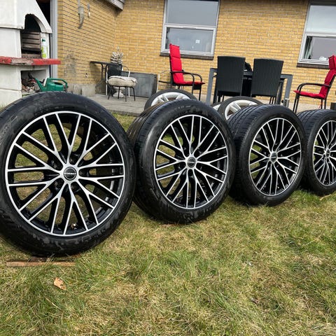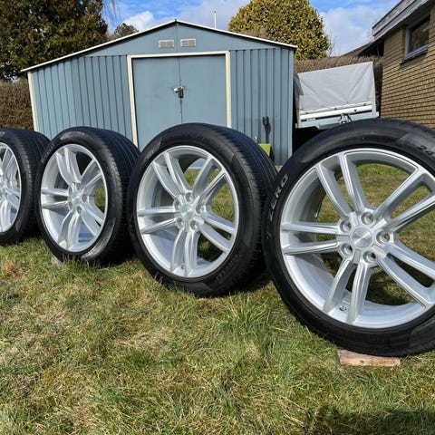 alufælge som nye ingen ridser eller skade, som helt nye. ingen brugs spår. afbalanceret og klar til brug. gode premium klasse dæk. nokian med masse af mønster tilbage over 85%. passer range rover, range rover sport. discovery, bmv x5, x6, ford, vw krafter, t5,t6, transporter, touareg, multivan, caravelle, amarok, tesla model x, ring for info 91114150