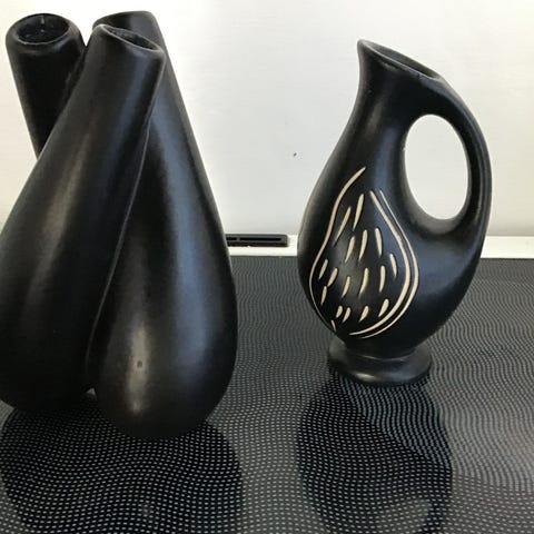 Flot vase der er sort glaseret med organisk hvid dekoration.