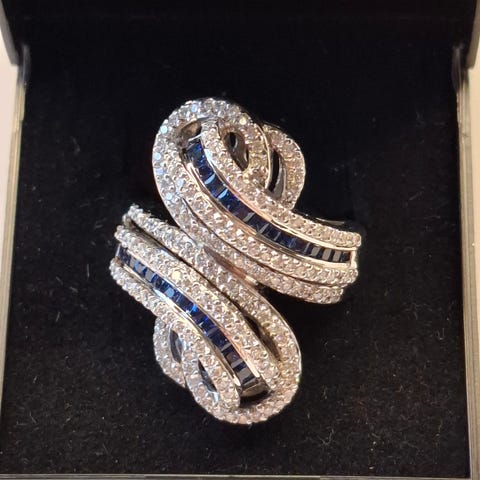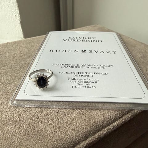 blå roset safir og diamant ring i 14 karat hvidguld på 3,5 g. i str. 55