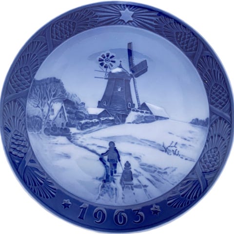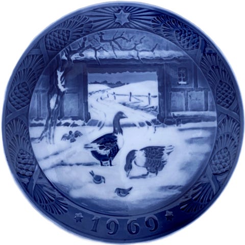 Den klassiske juleplatte fra Royal Copenhagen fra 1967 - Kongeegen ved Jægerspris i sne
