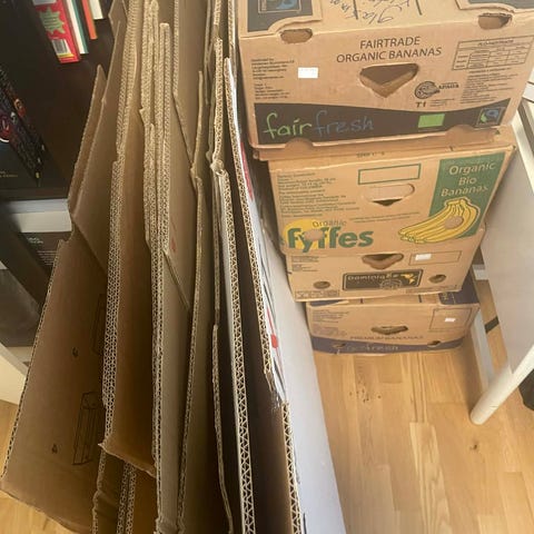 Flyttetæpper ca 13 stk, brugt til at flytte glas. Nogle af tæpperne er våde derfor ligger de i sække.