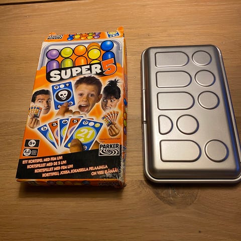 Parker Super 5 kortspil med farverige kort og spillets regler inkluderet. Spillet er designet til børn og familier og indeholder 21 kort, der bruges til forskellige spilvarianter. Komplet. Sender ikke for køb under 200 kr.